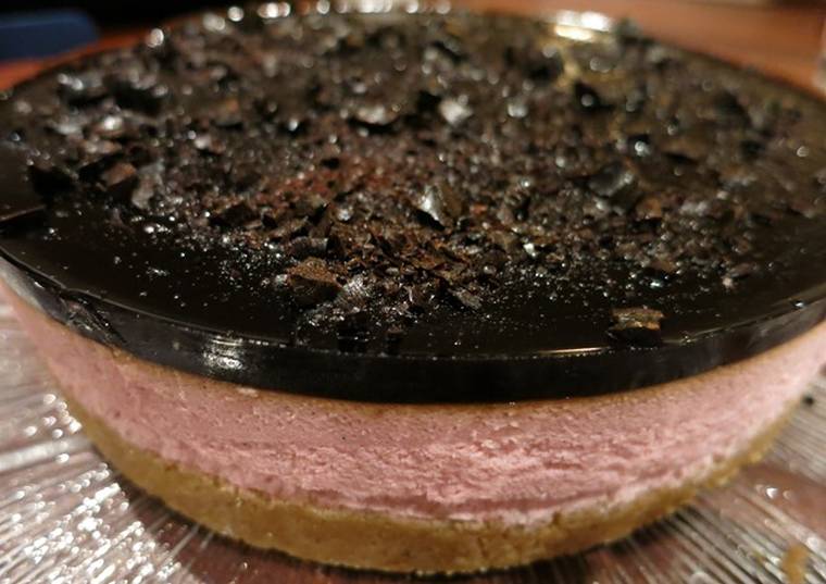 Smelt smørret. Bland kiksekrummer og lakridspulver. Kom smørret i, og rør det godt sammen. Fordel massen i en justerbar kagering eller springform (diameter: 18 cm, højde: 10 cm) – husk at fore kageringen med kagefolie/konditorplast inden fyldning da det er med til at give en skarp kant. Sørg for, at kiksemassen bliver trykket godt sammen i et jævnt lag. Stil kiksebunden i køleskabet i ca. 30 minutter.