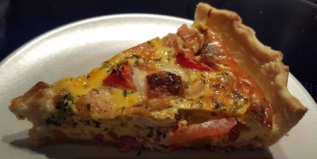 Er der nogen bedre måde at få brugt sine rester på, end i en lækker tærte. Det synes jeg ikke og derfor har jeg altid færdig tærtedej i fryseren. Ja, jeg er ellers altid for at lave tingene selv, men når det er hverdag og tingene skal gå lidt hurtigere, synes jeg den færdigkøbte tærtedej er udemærket. Køber dem gerne når de er sat ned og så ryger de i fryseren. Så er det nemt og hurtigt at lave en tærte til aftensmad. I denne tærte kom jeg kylling, bacon, broccoli og tomat i. Men det er kun fantasien der sætter grænser. Idet det er en tærte lavet på rester er der ikke lige gram på ingredienserne. Kom det i I har og når I synes der er nok fyld i, så stop.