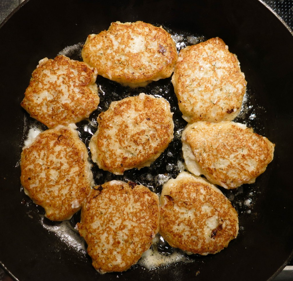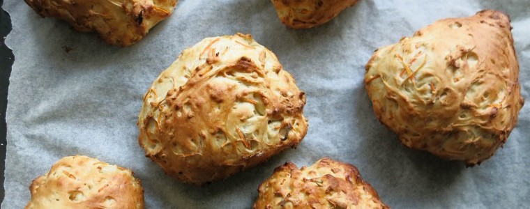 Det er meningen at dejen skal være ujævn. Når dejen er hakket i små stykker, deles den i 12 lige store stykker, som lægges på en bageplade med bagepapir. Lad dem efterhæve og bag dem midt i ovnen ved 200 grader varmluft i 15 minutter.