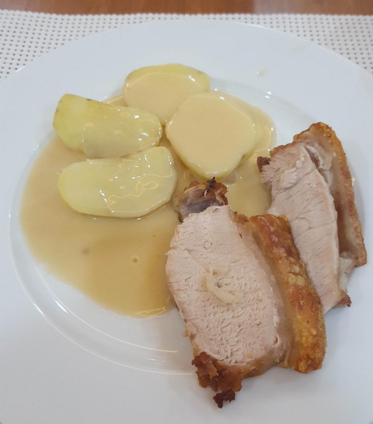 Vi er simpelthen så heldige at den lejlighed vi har her i Hanoi, Vietnam har en ovn. Så det har jeg virkelig benyttet mig af. En af de ting vi lavede var flæskesteg med sovs og kartofler. Manglede dog lige kuløren i sovsen. Det er ikke rigtig noget de gør i her og manglede rødkålen. Min mand var dog godt tilfreds, og var skønt med dansk mad, efter vi har været hjemmefra så længe. Svinekød er ikke ret dyrt her i Vietnam, vi gav 30 kr for 1 kg kamsteg.