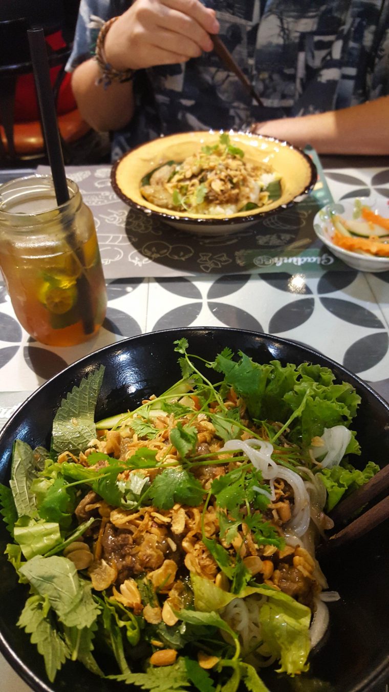 Havde jo læst at vietnamesisk mad er så lækkert, og jeg må sige jeg giver dem ret. Efter en måned på Filippinerne, hvor de ikke rigtig kommer grønsager i deres retter, er det en fornøjelse at få masser af grønsager og krydderurter i maden igen. De laver så mange lækre nudelretter, som jeg skal prøve selv på et tidspunkt.