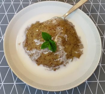 Denne dessert er en af vores fortrukne når vi får gæster. Den er nem at lave og så skal den laves dagen før. Det eneste er at komme solbærsyltetøjet på lige inden servering.