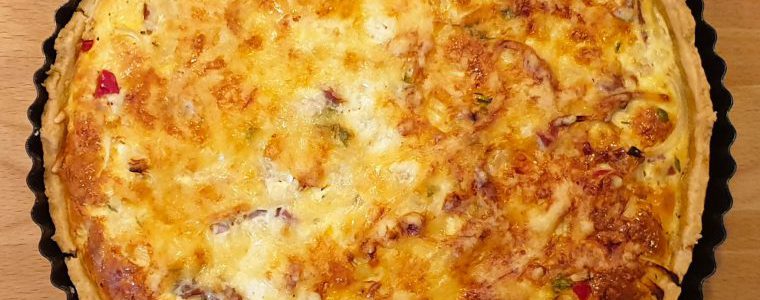 Tag tærten ud af ovnen, og fyld den med det du synes. Se evt. min opskrift på tærte. Tærte er den bedste måde at få brugt de rester man nu måtte have i sit køleskab.