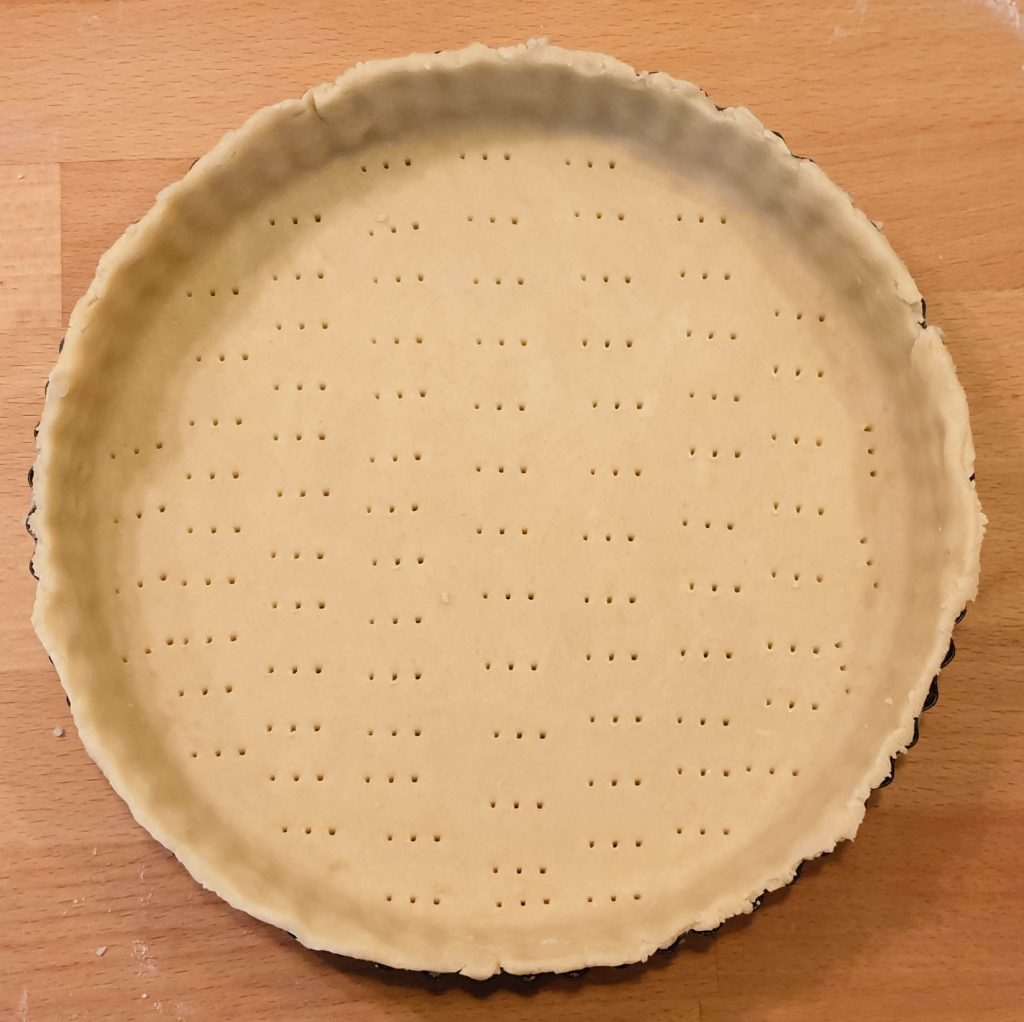 Tag din tærtedej ud af køleskabet, og prik bunden med en
