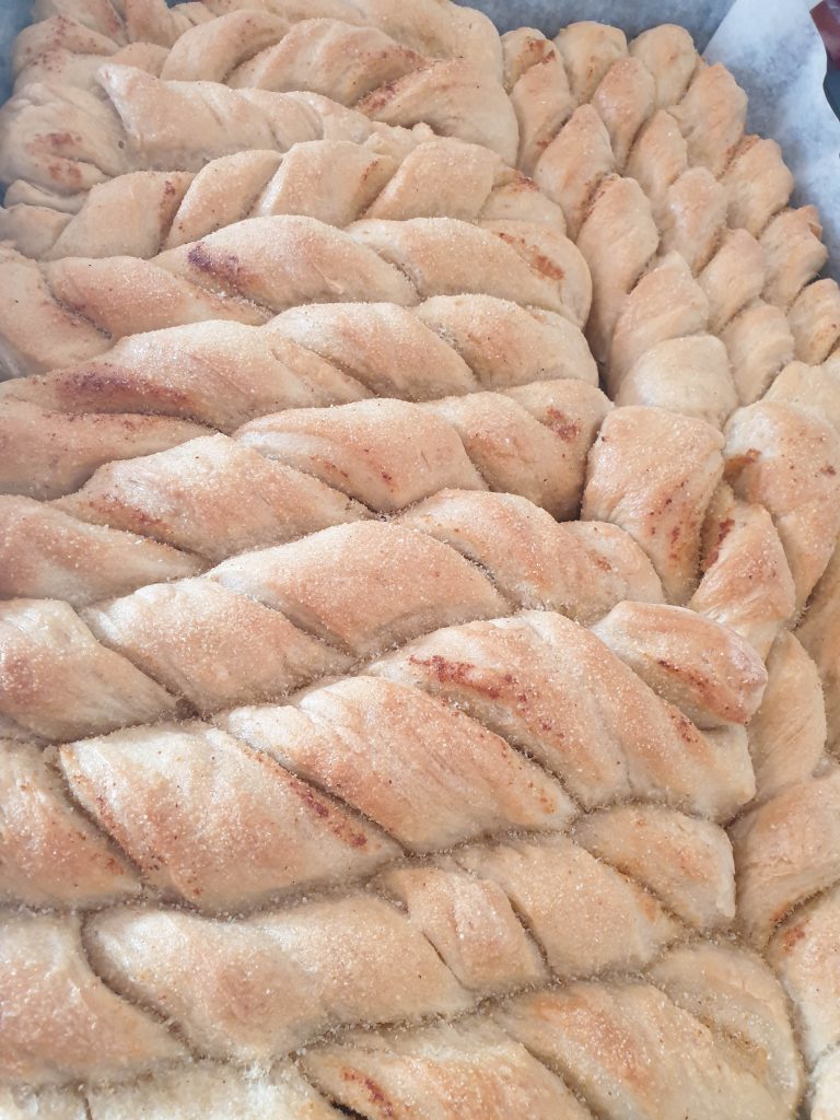 Nu vi er hjemme igen, har jeg ledt efter en copycat opskrift på disse brød, og jeg synes denne her kommer meget tæt på. Da frisk gær ikke rigtig er noget de bruger ude i verden, har jeg lavet dem med tørgær og de blev rigtig gode. Hvis du ikke har tørgær så brug en pakke alm. frisk gær. Jeg kom dog alle mine brød i den samme bradepande. Næste gang vil jeg dele det i to bradepander, da de voksede pænt meget ind i hinanden.