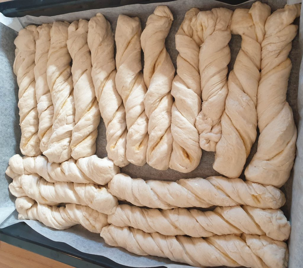 efterhæve i ca. 20 minutter. Fylder 2 plader med 12 på hver.