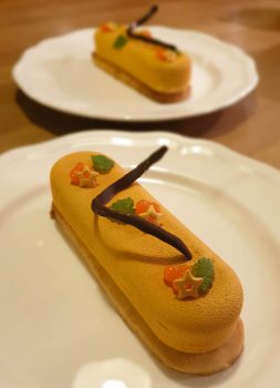 Dagen efter lavede jeg moussen og bagte mørdejen. Jeg kom mørdejens bundene i en lufttæt beholder, så de kunne holde sig sprøde til selve samlingen af desserten.