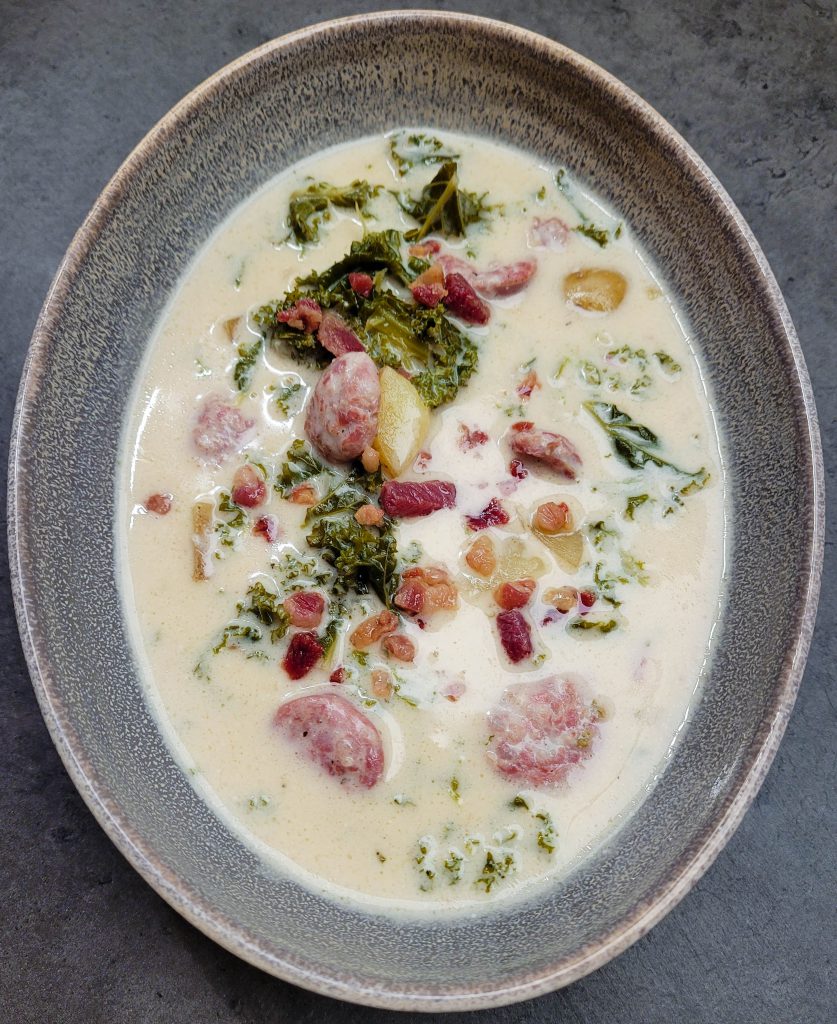 Den er også god her om vinteren, da grønkål er i sæson. Men hvis du ikke kan skaffe grønkål, kan du også bruge spinat.