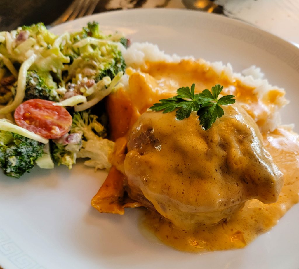Der var masser af dejlig sovs, og vi endte med at skovle det op med en ske, da intet skulle gå til spilde.