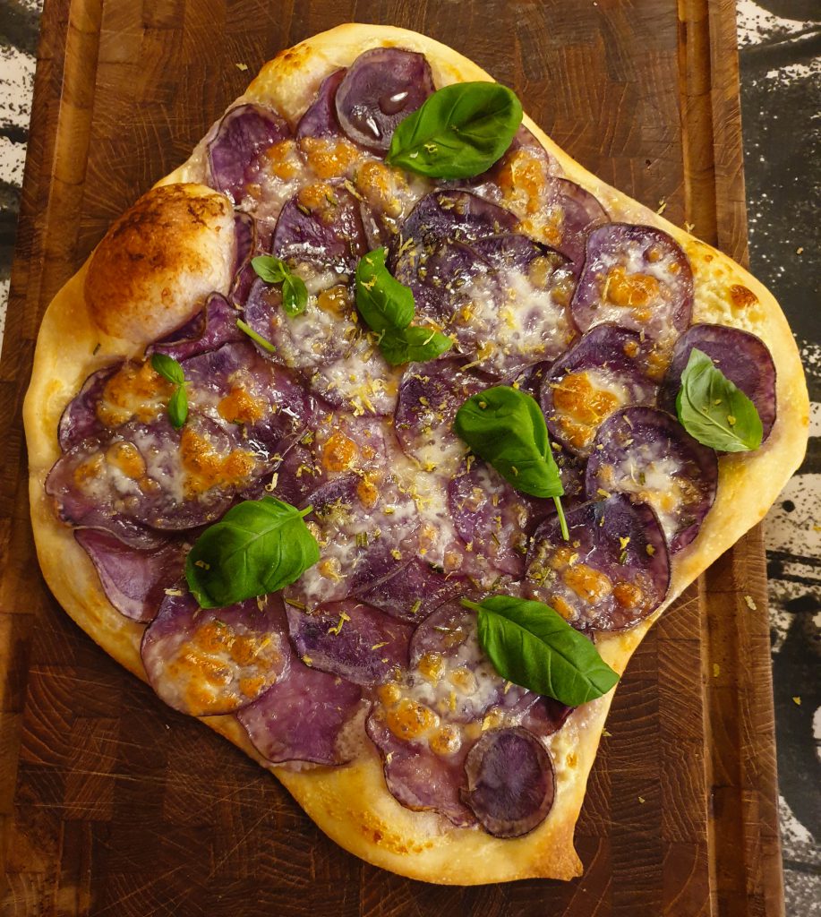 Disse sjove blå kartofler kan du købe i de lidt mere velassorteret supermarkeder, men hvis du ikke kan finde dem, er helt almindelige kartofler også rigtig gode.