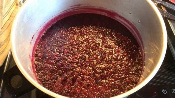 De skyllede bær, vand og citronsaft varmes langsomt under låg, til det safter. Bærrene koges 5-10 minutter, til de skifter farve. Det meste af sukkeret drysses i og koges med 10 minutter. Melatin og resten af sukkeret blandes med en gaffel og drysses fint under omrøring i den kogende frugt. Marmeladen koges 2 minutter, fyldes i Atamonskyllede glas, der lukkes.