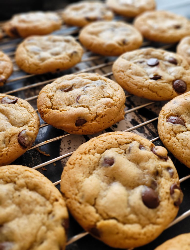 Jeg ville dog ikke gå på kompromis med smagen og det gjorde jeg heller ikke. Jeg vil faktisk sige at disse cookies lavet med olie er vanvittig gode. Olien gør at de er meget mere chevy, hvor smør gør dem mere sprøde. Jeg er vild med cookies der har denne seje krumme, rigtig amerikansk.