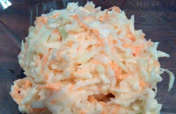 Jeg er stor fan af dette tilbehør og den coleslaw man får hos KFC er en af mine farvoritter. Den er en smule sød, men det er også det jeg kan lide ved den. Min mand er ikke til så søde ting, så hvis du har det på samme måde, så spar lidt på sukkeret. Dette er en opskrift jeg har fundet på keyingredient.com.