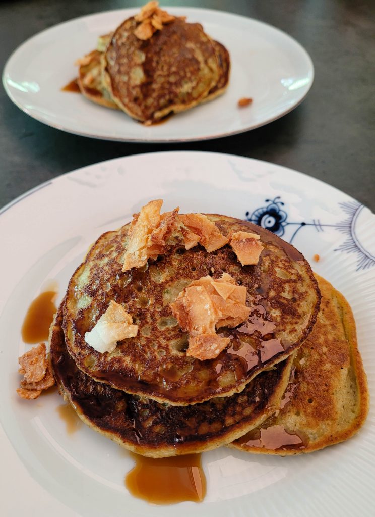 Da jeg havde fået en hel stak pærer, og ikke helt kunne nå at spise dem, tænkte jeg over hvad de kunne bruges til. Jeg er ret glad for pandekager, især de hurtige amerikanske af slagsen, og da jeg faldt over denne super hurtige opskrift på sunde havregrynspandekager med pærer, så besluttede jeg mig for, at den skulle prøves af.