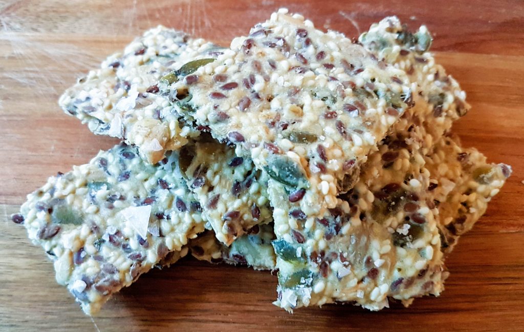 Da jeg var løbet tør for nogle af de kerner der skal i, brugte jeg en stenalderbrødsblanding jeg havde liggende. Tog nødderne ud af blandingen hvor der var 500 gram i. Tilsatte ½ dl havregryn og 3 dl mel i stedet for det der står i opskriften. De blev lige så fine som sædvanligt, så hvis du ikke gider have så mange forskellige poser med frø stående derhjemme, er det et godt alternativ.