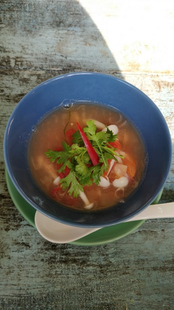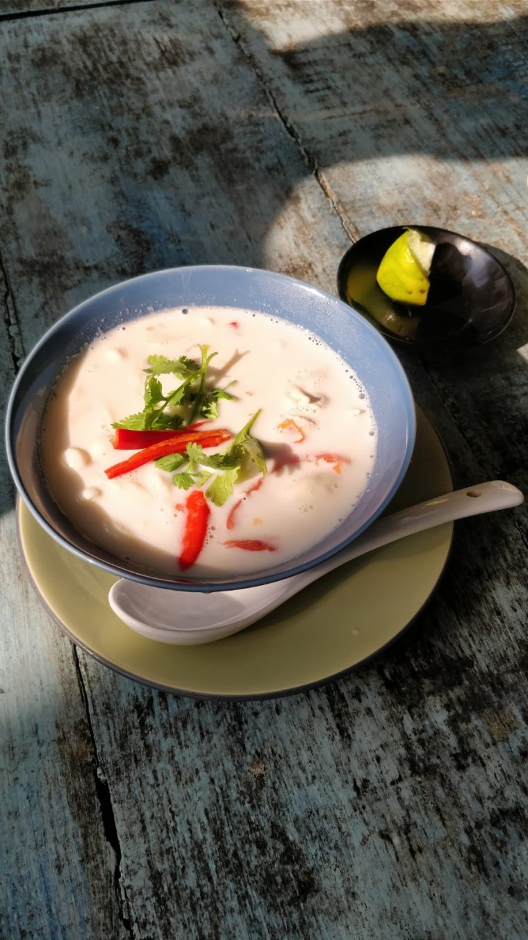 Denne suppe er en af min mands favoritter og er den suppe han skal have hver gang vi kommer til Thailand. Jeg vil nu gerne have den suppe der hedder Tom Yam Ghoong, som stort set er den samme suppe, man skifter bare kokosmælken og kyllingen ud med hønsefond og rejer, rejer skal dog først i lige til sidst, da de bliver tilberedt hurtigt.