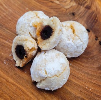 Jeg er vild med de italienske amarena kirsebær. Denne opskrift er på nogle italienske mandelkager med et kirsebær i midten. Virkelig skønne og et hit på julebordet. Opskriften er en engelsk opskrift I kan finde her.
