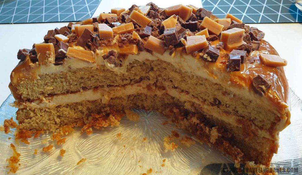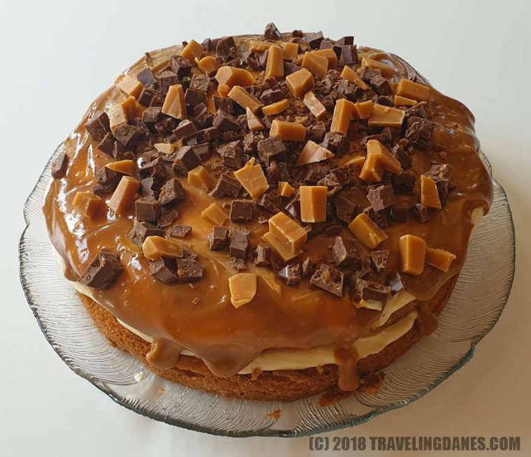 Denne karamelkage er en opskrift jeg har fundet i mit madmagasin BBC Goodfood. Det er en nem kage der er lige til at gå til og som kan laves selvom man ikke har ret meget tid. Perfekt som en fødselsdagskage eller hvis du inviterer gæster i sidste øjeblik, og gerne vil imponere.