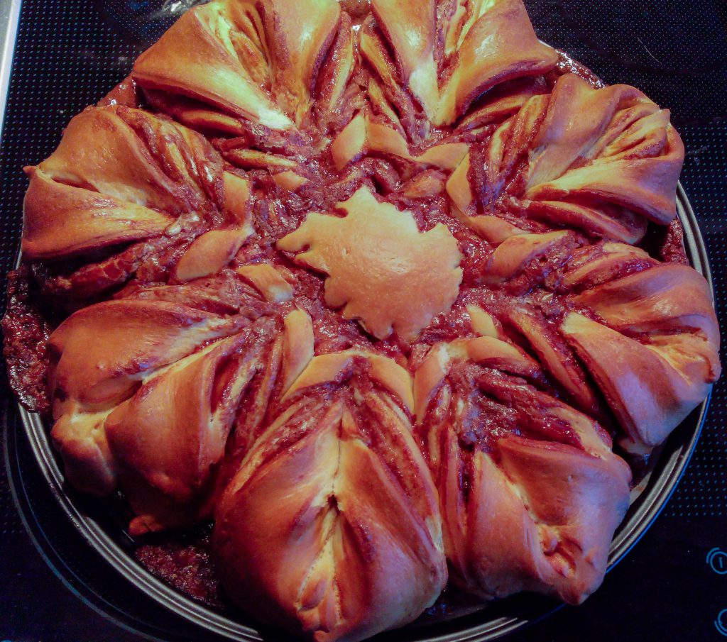 Denne kage ville også kunne laves som en stor kanelstjerne, så er det bare at lave det samme fyld som i kanelsnegle og så smørre det på i stedet for.