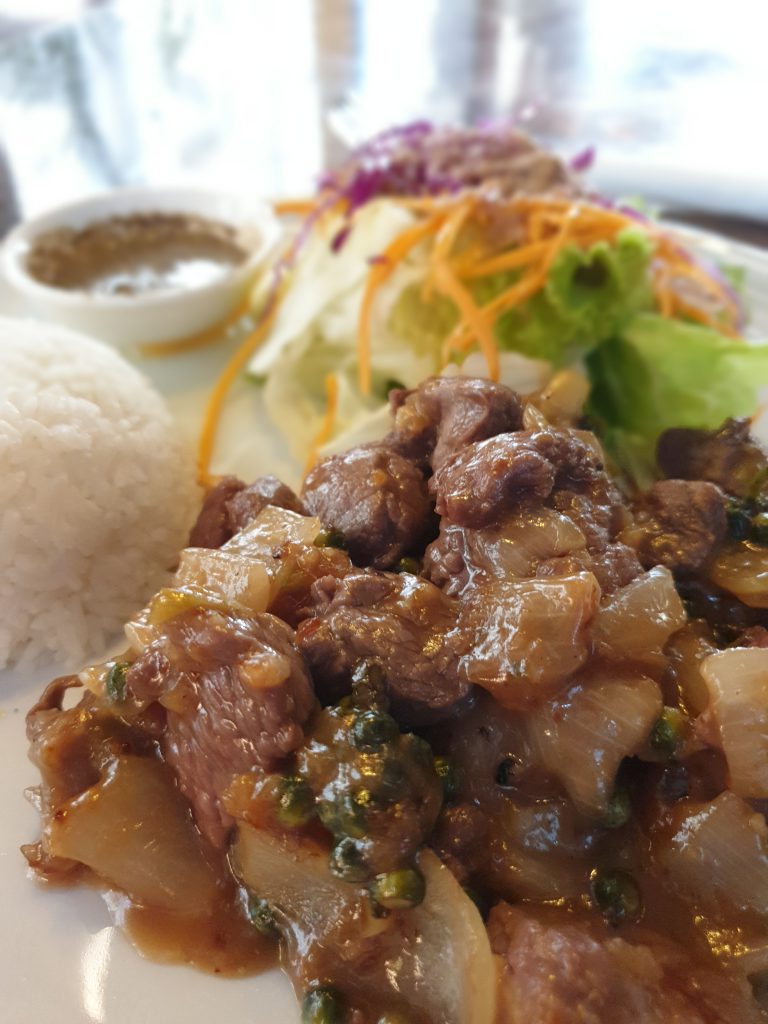 Vi har jo været en måned i Cambodia og en af de retter man kan få alle steder, er Beef Lok Lak.