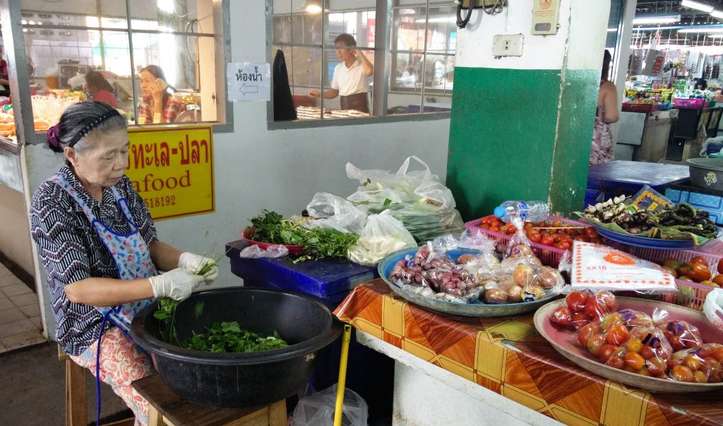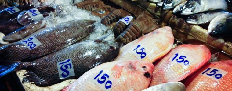 Nej, hen på det lokale marked og køb de lækreste grønsager og ind i den afdeling der står med kød og fisk.