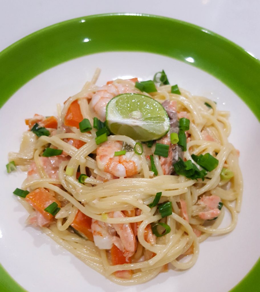 Nu hvor min mand og jeg rejser rundt i Asien, er det at lave asiatisk mad ikke nogen succes. Det er nemlig meget svært at gøre dem det efter, og når man kan gå ned og købe det via diverse streetfood boder til meget få kroner, er det ikke dem man vil prøve kræfter med. Pasta med laks og rejer er en ret jeg elsker, og kan finde ud af at lave. Dog har jeg taget et madkursus her i Chiang Mai og det kan godt anbefales.