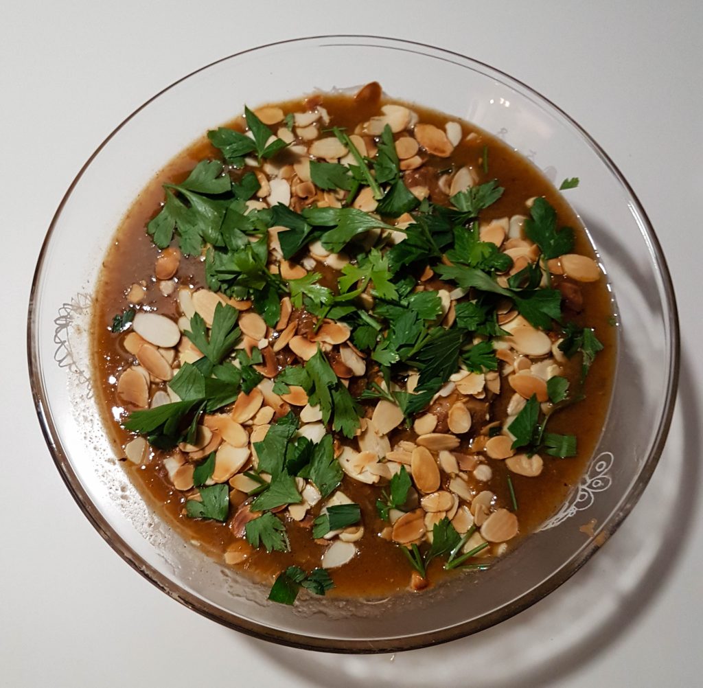 Pynt med bredbladet persille og ristede mandelflager. Server med kartoffelmos og en skøn vintersalat med æble og fennikel.