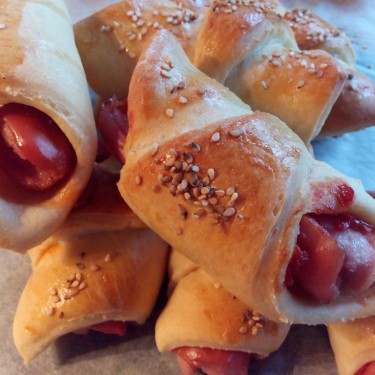 Skønne pølsehorn der er lækre at servere til børnefødselsdagen eller tage med i madpakken.