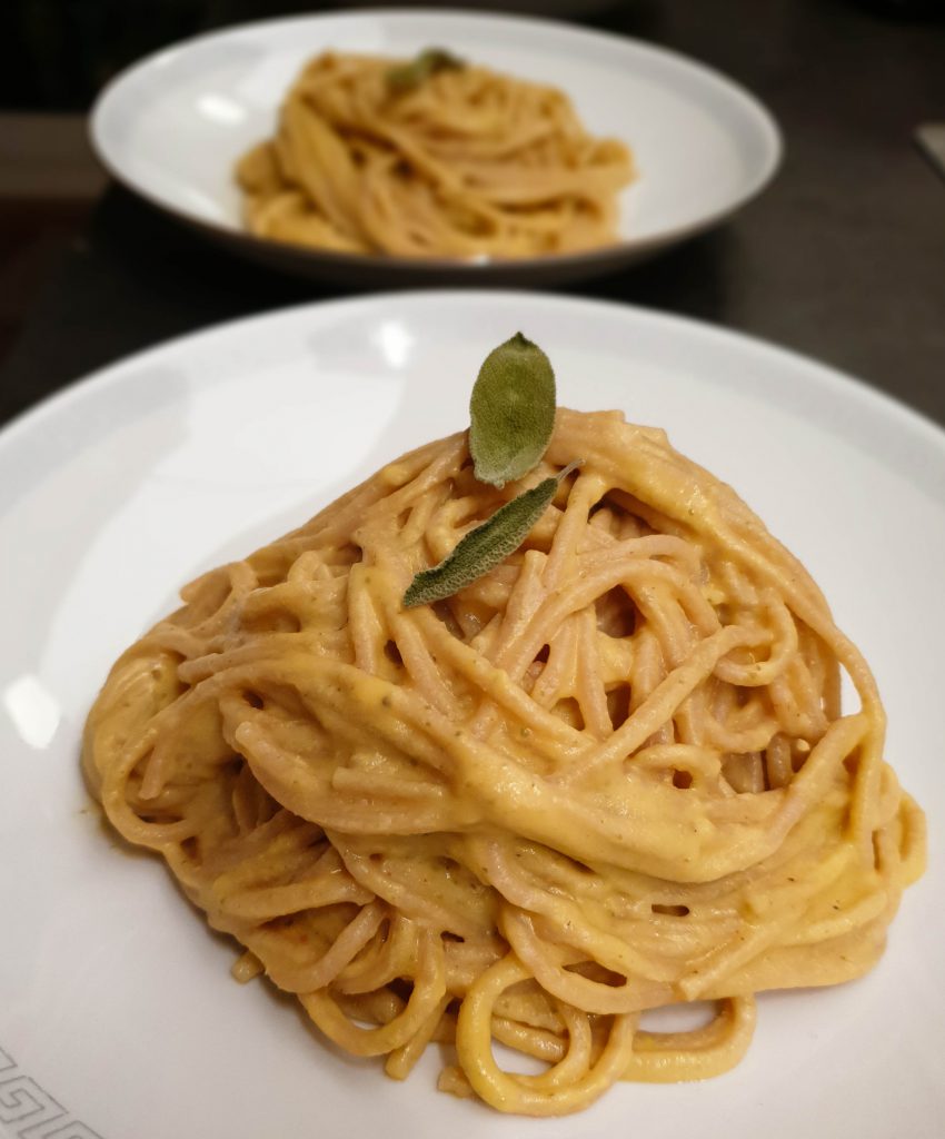 Spaghetti i cremet græskarsovs 4-6 personer: