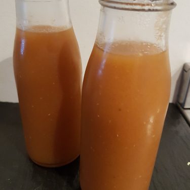 Da vi har et ferskentræ i vores drivhus, har jeg rigtig mange ferskner. Dem kan vi ikke nå at få spist alle sammen, så idag lavede jeg lidt marmelade. Det er altid godt at have stående, da det kan bruges som værtindegave i en håndevending.